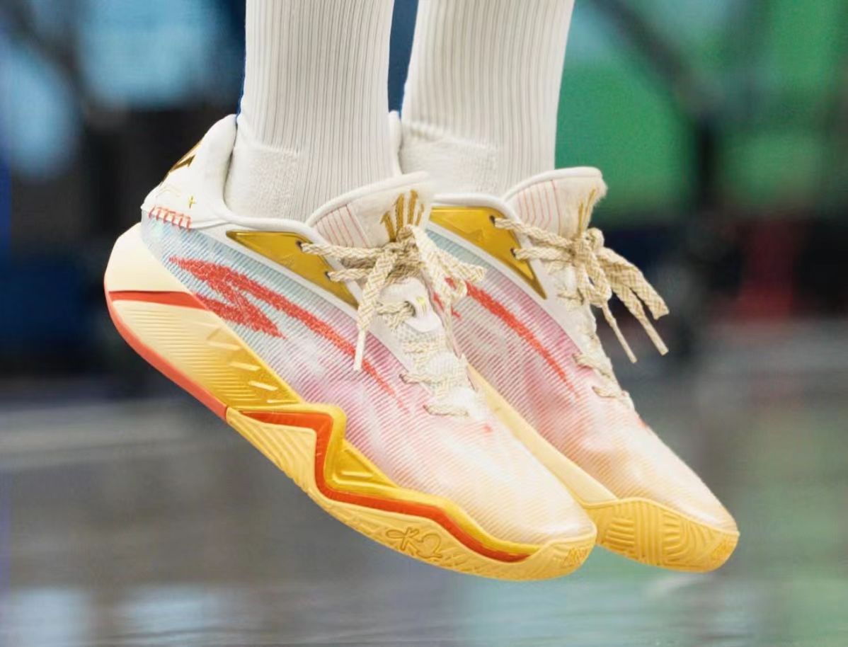库里穿着骐骥配色安踏KAI3进行赛前热身