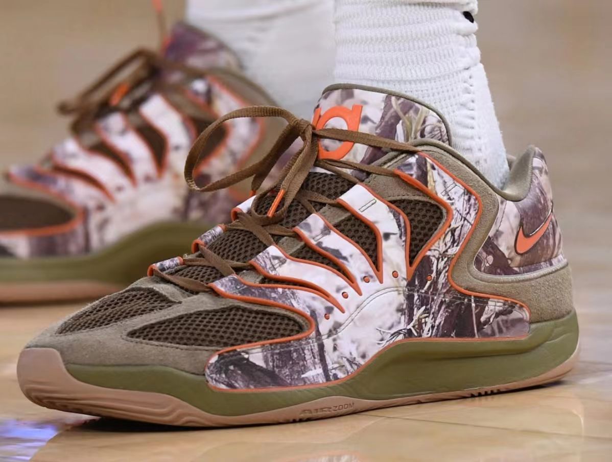 霍姆格伦穿着个人专属迷彩褐色KD18,得到21分8篮板3助攻