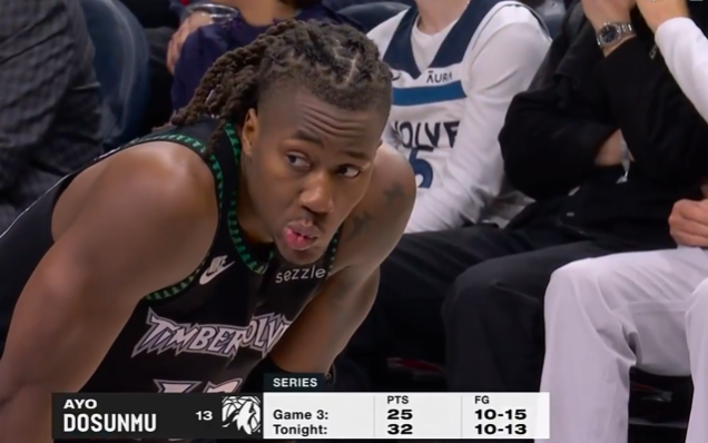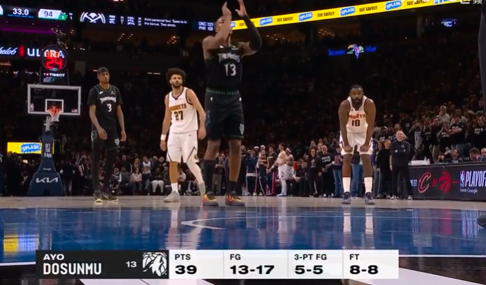 阿门出战48分钟,投篮14中8得到26分11篮板4助攻3抢断3盖帽