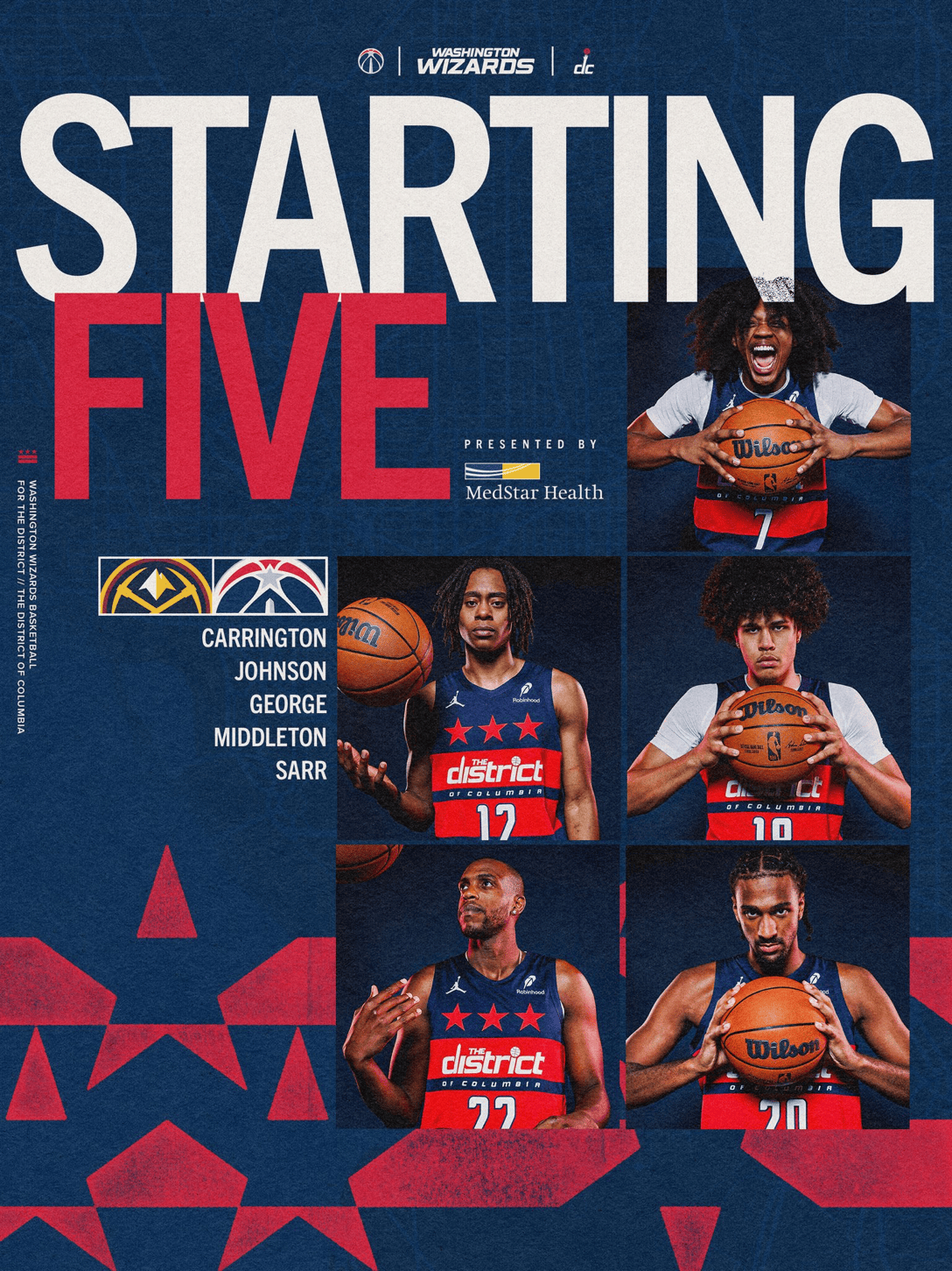 奇才首发:卡林顿、约翰逊、乔治、米德尔顿、萨尔