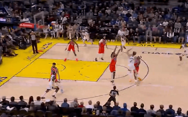 波杰姆斯基运球压哨三分强投命中,勇士三节暂落后3分