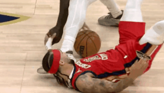 戴维斯腿部与切特发生碰撞受伤,目前6投全失被替换下场