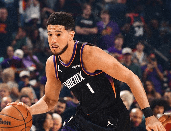布克全场17投仅7中,三分2中0得到22分1篮板4助攻1抢断