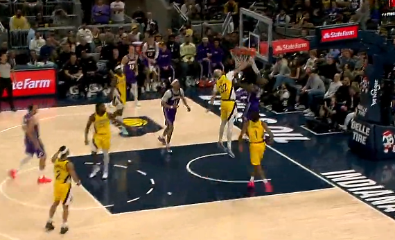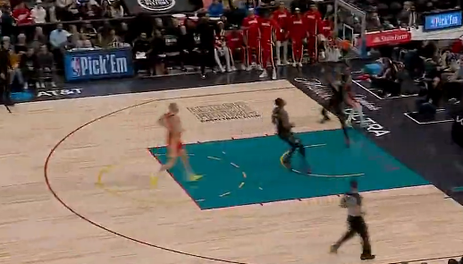 尚帕尼径直杀入禁区上演单臂隔扣,个人砍下8分5篮板2助攻