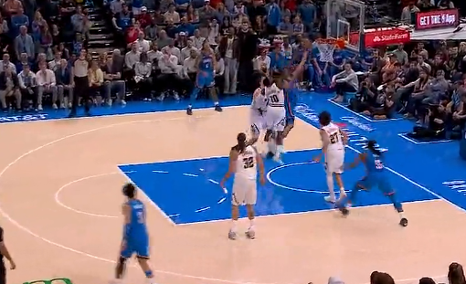亚历山大反击一条龙上篮打进得分已上双,雷霆追到4分
