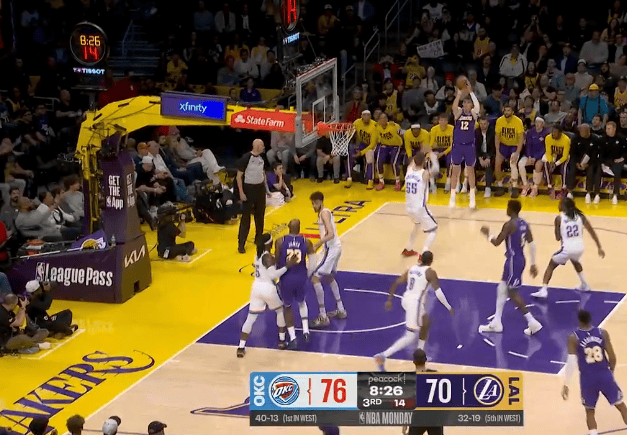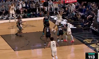 布朗尼身后封盖奥利尼克,随后又单挑撤步三分投进得到8分
