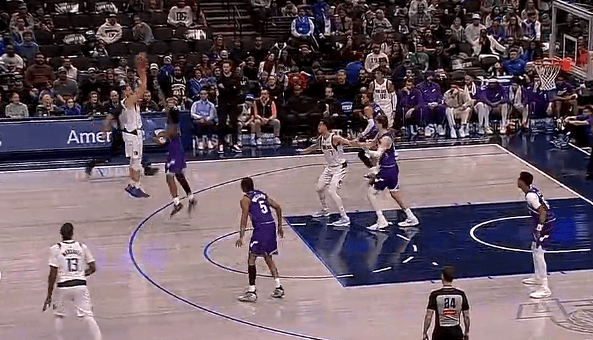 东契奇首节12投7中,三分4中3、罚球4中2得到19分2助攻