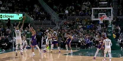 库兹马超远三分压哨命中,半场战罢雄鹿65-62领先太阳