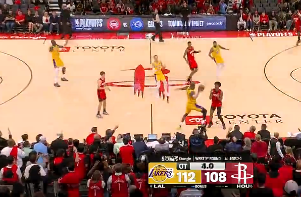 常规赛+季后赛关键时刻战绩:湖人24胜8负、火箭22胜25负