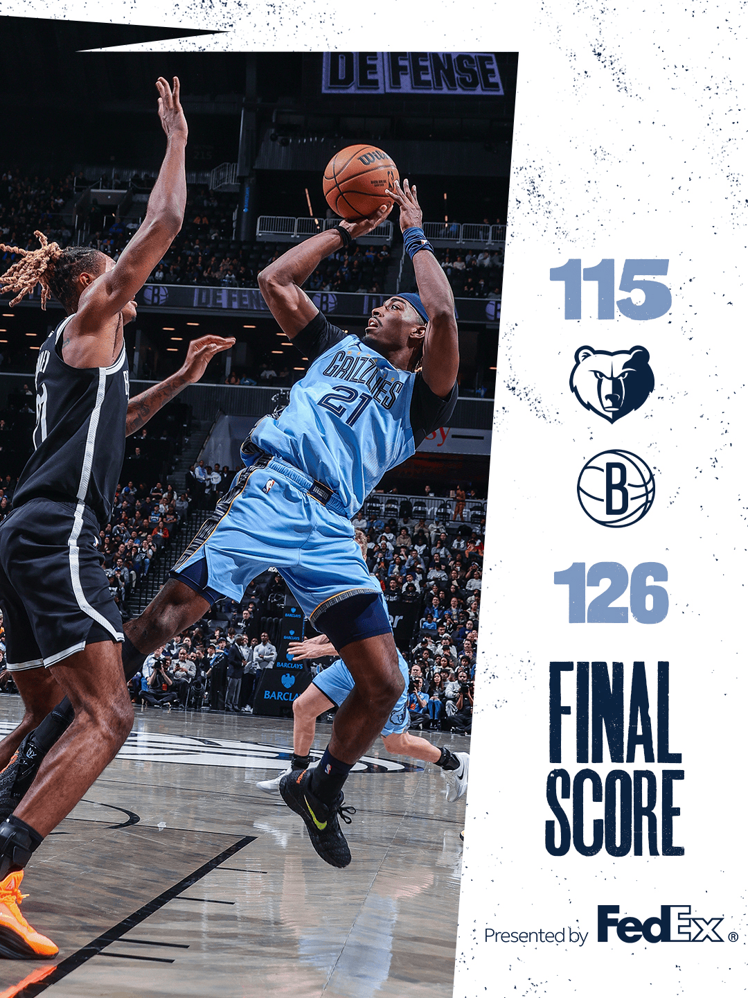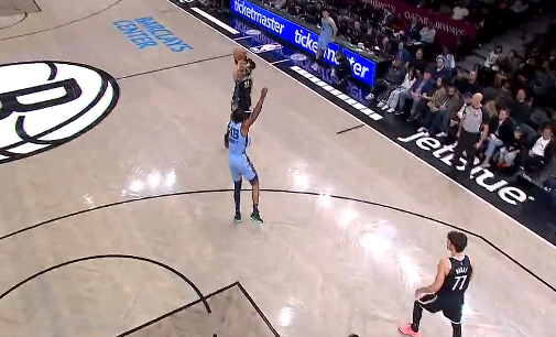 杰伦-威尔逊接球三分投进,篮网领先灰熊到21分分差