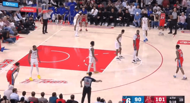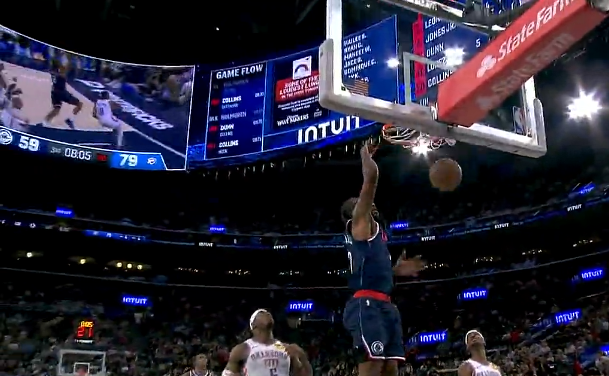 科比-怀特面对奥萨尔全场跟防,背运后撤摆脱将对方晃倒