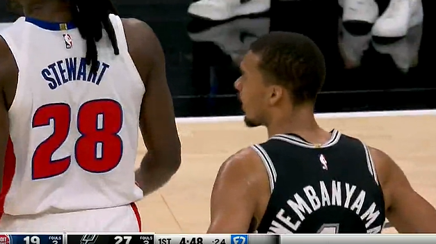 班巴全场得到6分12篮板,得分篮板创赛季新高
