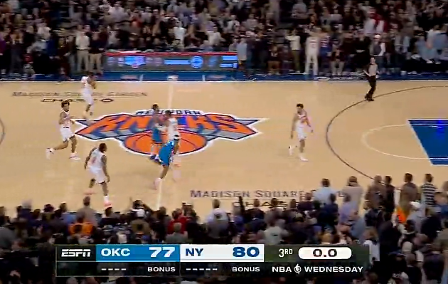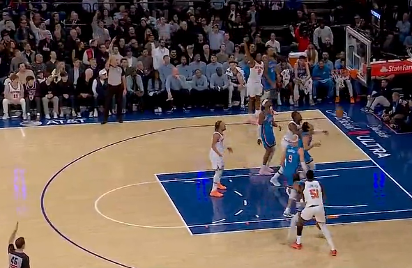 布伦森强投三分颠进篮筐,尼克斯两节时间落后两位数后追平