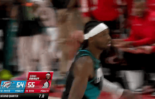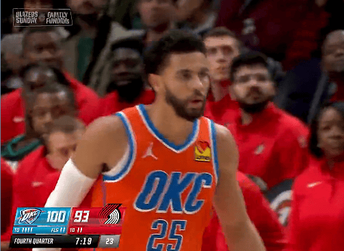 阿杰伊-米切尔接球三分投进,雷霆末节领先开拓者至9分