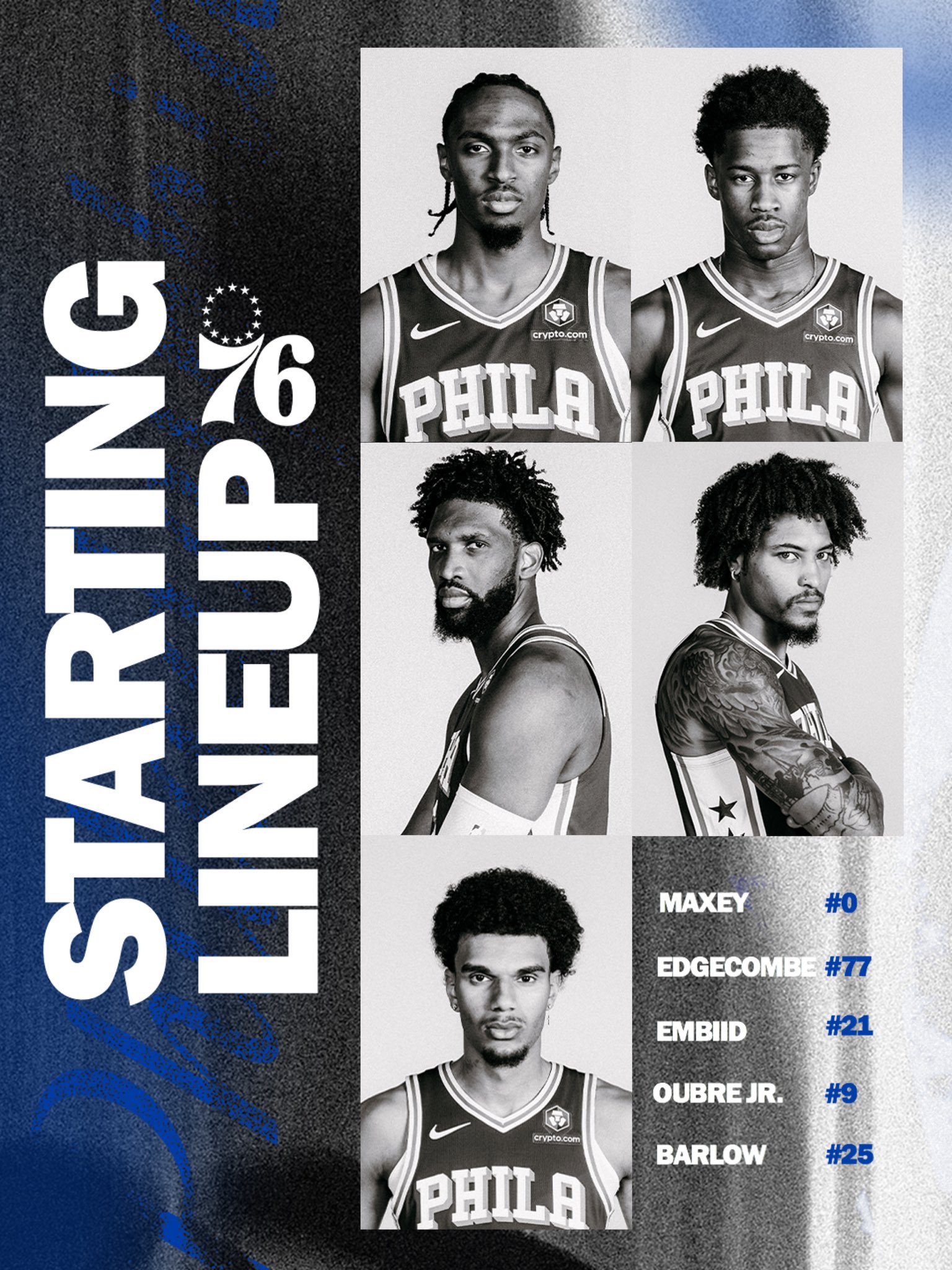 76人今日首发:马克西,埃奇库姆,恩比德,乌布雷和巴洛