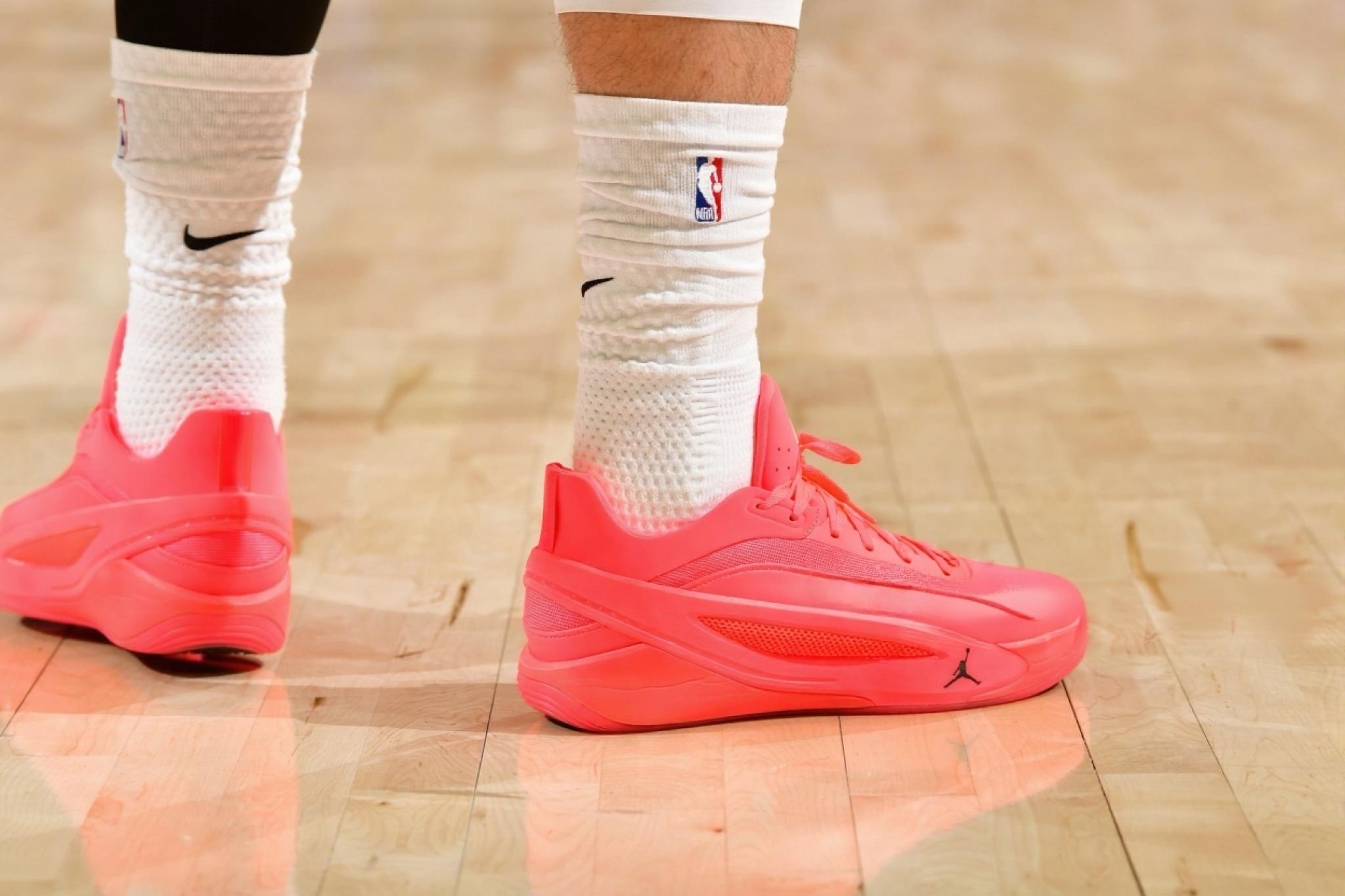 东契奇穿着粉色Luka5,得到27分11篮板7助攻4抢断