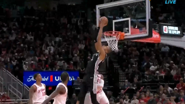 火箭半场43-42领先老鹰,杜兰特12分&亚历山大-沃克12分