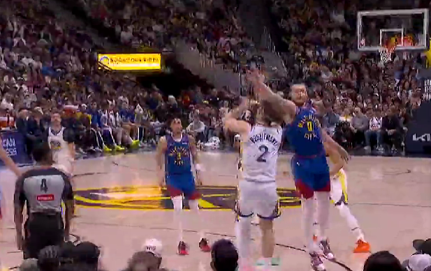小哈达威接球三分投进,掘金一波12-3反超5分打停勇士