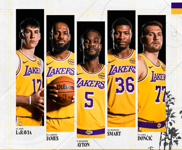 湖人今日首发:拉拉维亚、詹姆斯、艾顿、斯马特、东契奇