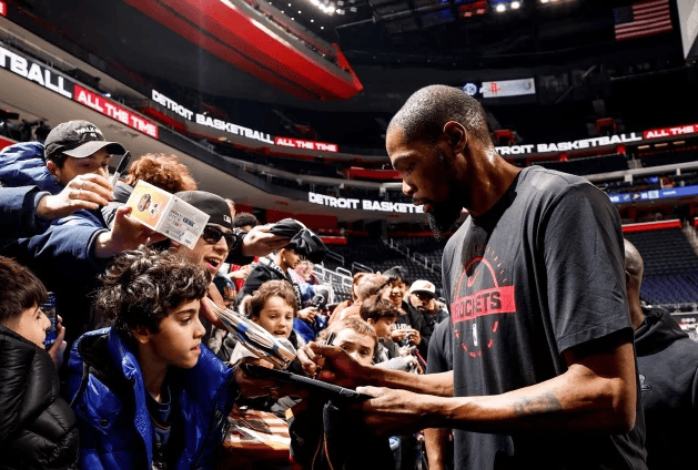优质偶像!火箭社媒分享杜兰特给现场球迷亲切签名的瞬间