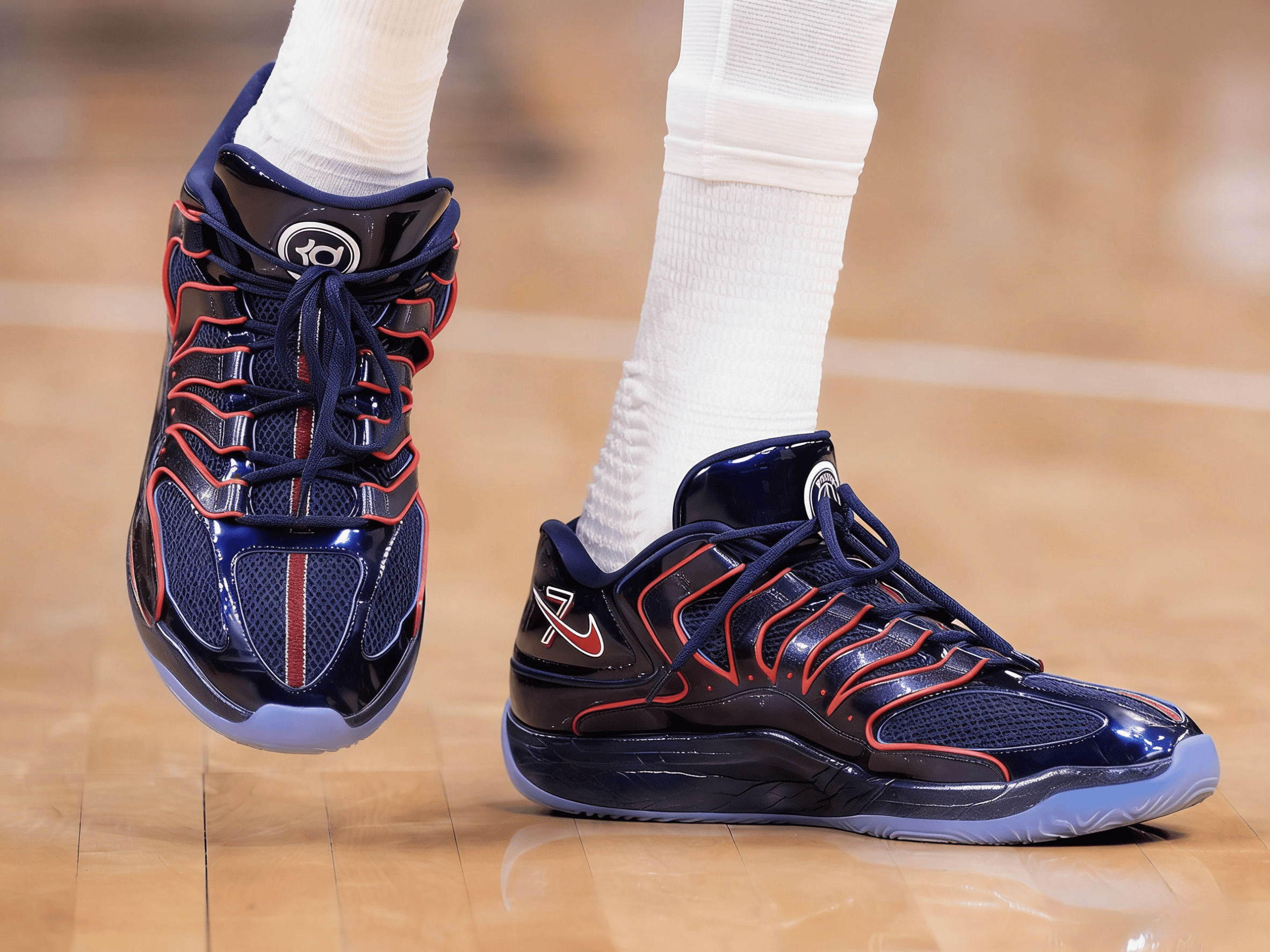 杜兰特穿着巴黎圣日曼联名KD18,得到24分2篮板6助攻1盖帽