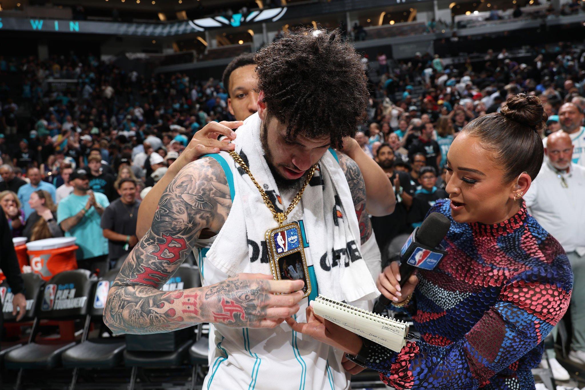 赢球功臣!鲍尔赛后佩戴转播方颁发的“PlayMaker”纪念项链