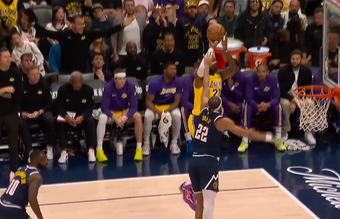 詹姆斯后转身翻身跳投命中,超越贾巴尔登顶历史进球榜第一