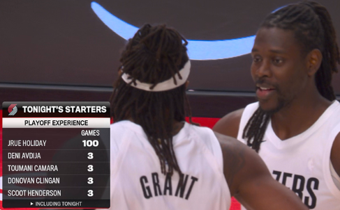 季后赛累计出场次数:霍勒迪一人100场,首发其余四人仅12场