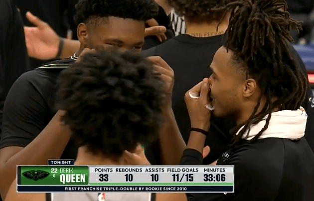 奎因和英格拉姆是鹈鹕队史唯二单节20分+5助攻的球员