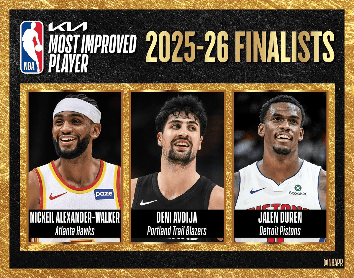 目前流出的最快进步球员投票:亚历山大-沃克81分、杜伦39分