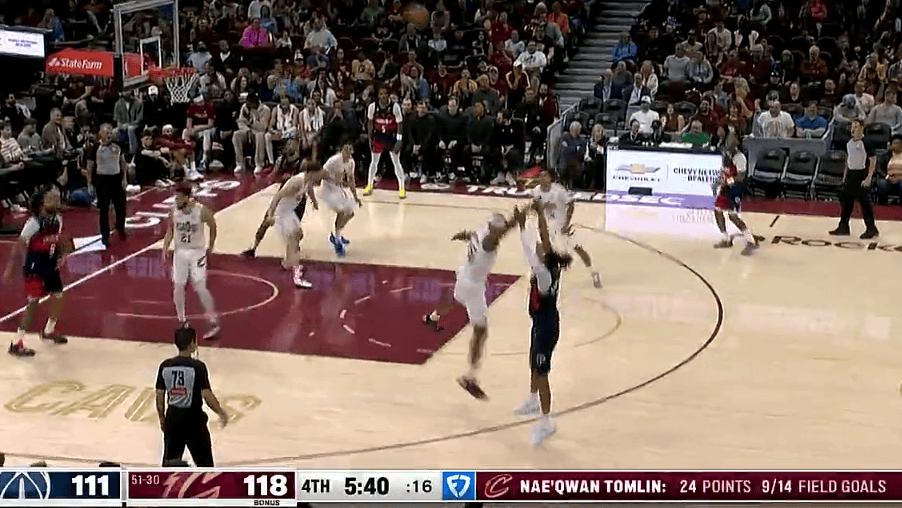 虎扑内匡-汤姆林目前14中9砍下24分7篮板,骑士118-111领先奇才