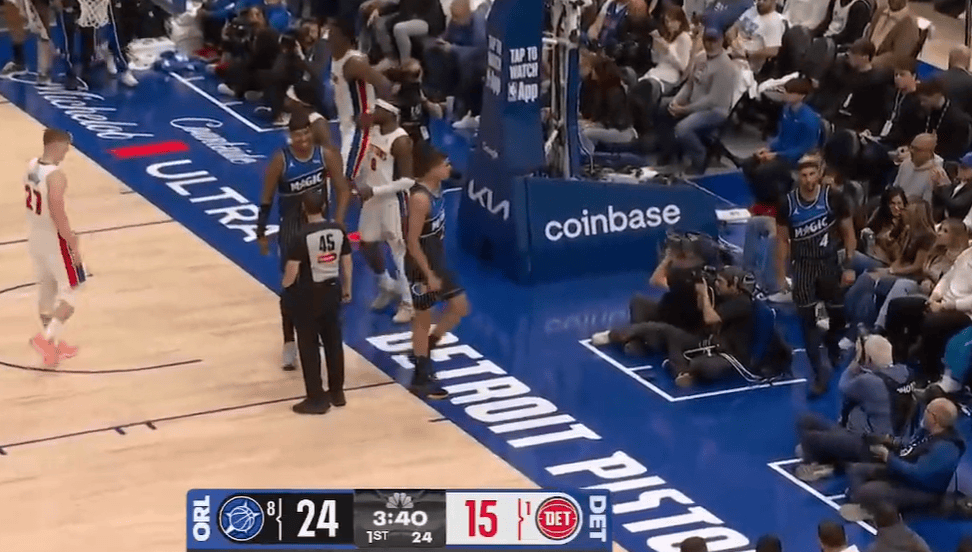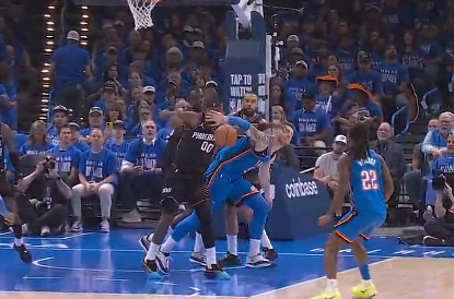 麦科勒姆投篮时脚踢到布伦森下体,前者被判技术犯规