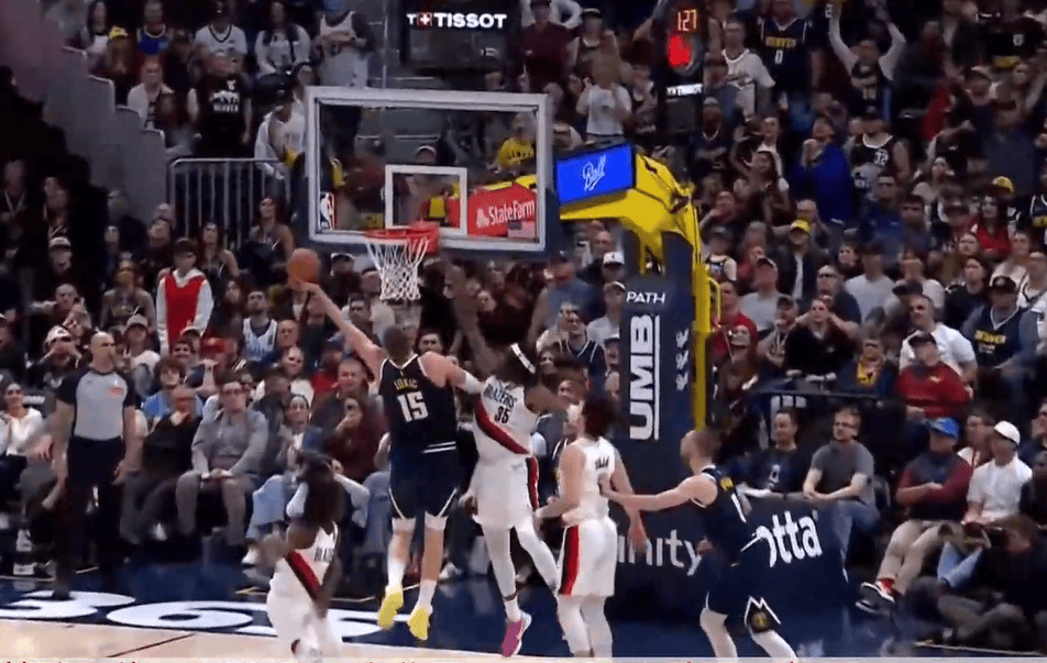 瓦塞尔精彩背运过掉霍勒迪,随后准备单臂劈扣被犯规