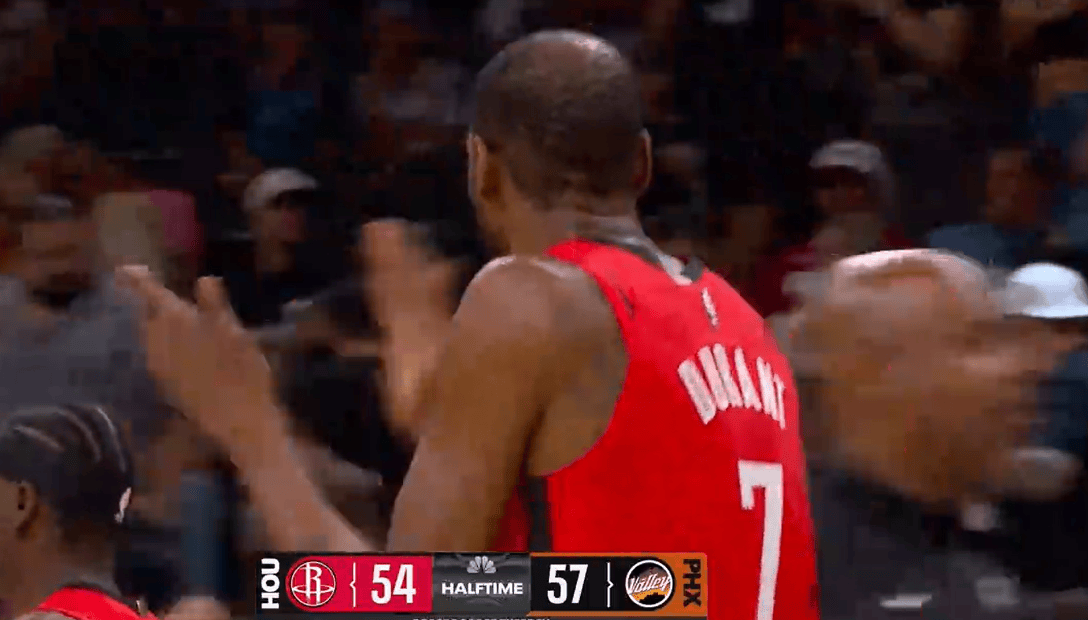 虎扑火箭半场54-57落后太阳,杜兰特11分&布克21分