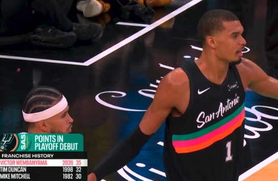 文班亚马季后赛首秀单场35+得分并投进5三分,历史首人