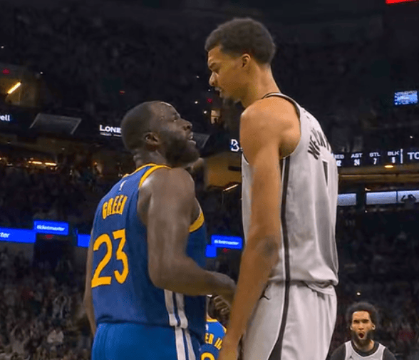格林篮下对抗强起上篮,遭文班亚马正面大帽扇出界外