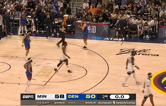 半场:掘金50-58落后森林狼,约基奇15+4+4海兰德15分