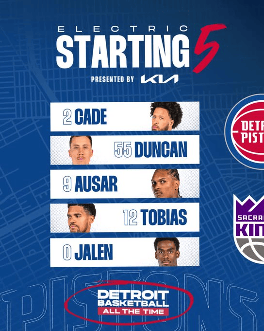 活塞首发:邓罗、哈里斯、奥萨尔、坎宁安、杜伦