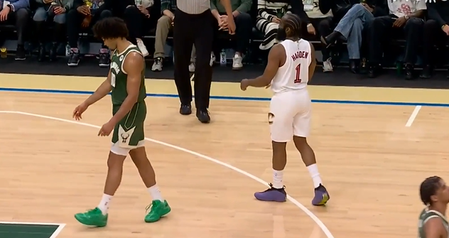 哈登上一回合踩脚裁判未理睬,下回合哈登造西姆斯三分犯规