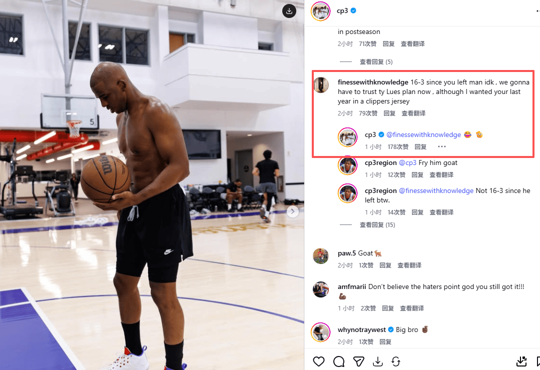 网友:你走了快船16胜3负;保罗回复:哭笑表情😂 🫡