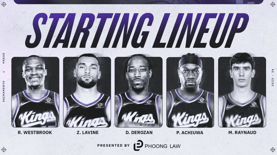 战湖人!国王首发:威少、拉文、德罗赞、阿丘瓦、雷诺