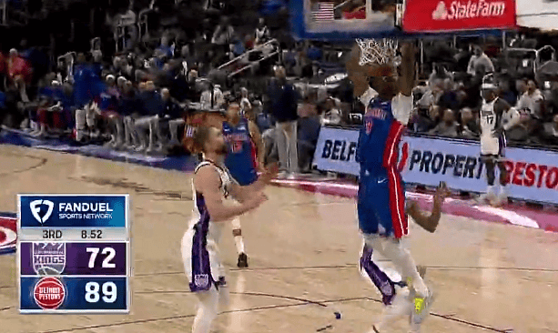 霍兰德反击双手暴扣,活塞领先国王到两位数分差