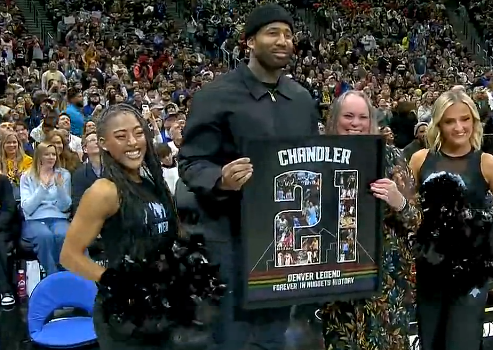 加油助威!前掘金球员威尔森-钱德勒现身掘金主场观众席