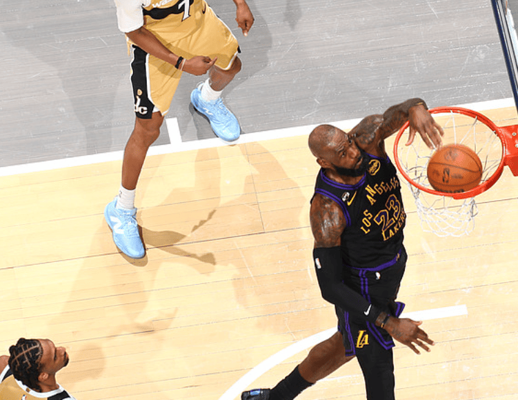 詹姆斯突破萨尔上演左手隔扣,本场砍下20分3篮板6助攻