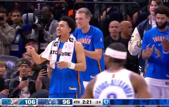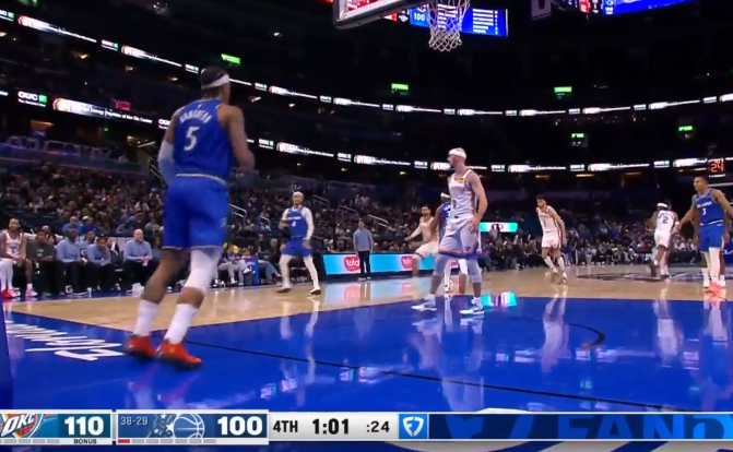 卡鲁索反击上篮打进,雷霆领先到10分魔术叫出暂停