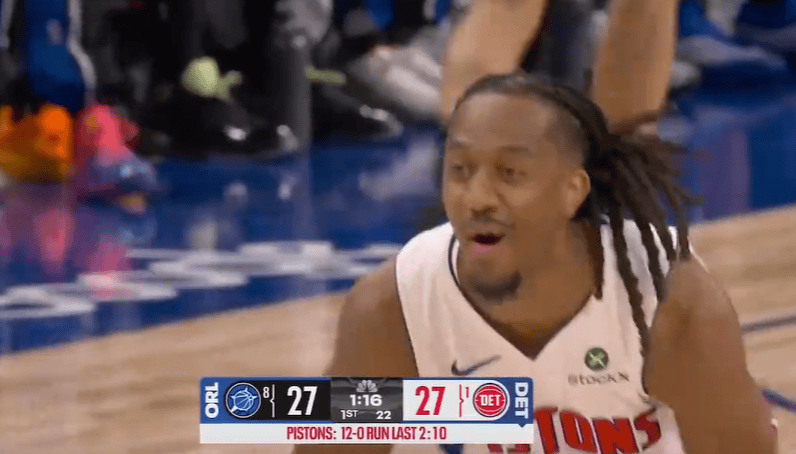 詹姆斯干拔三分拿到13分,肯纳德三分续上已经4中4砍下24分