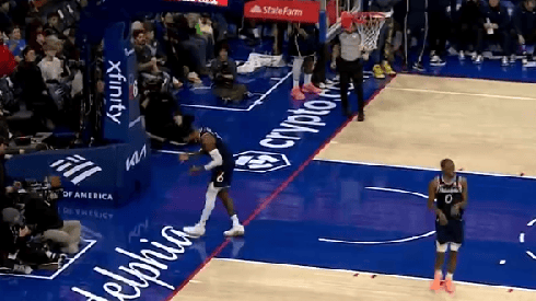 普罗克特接米切尔长传助攻,远距离滑翔上篮打进