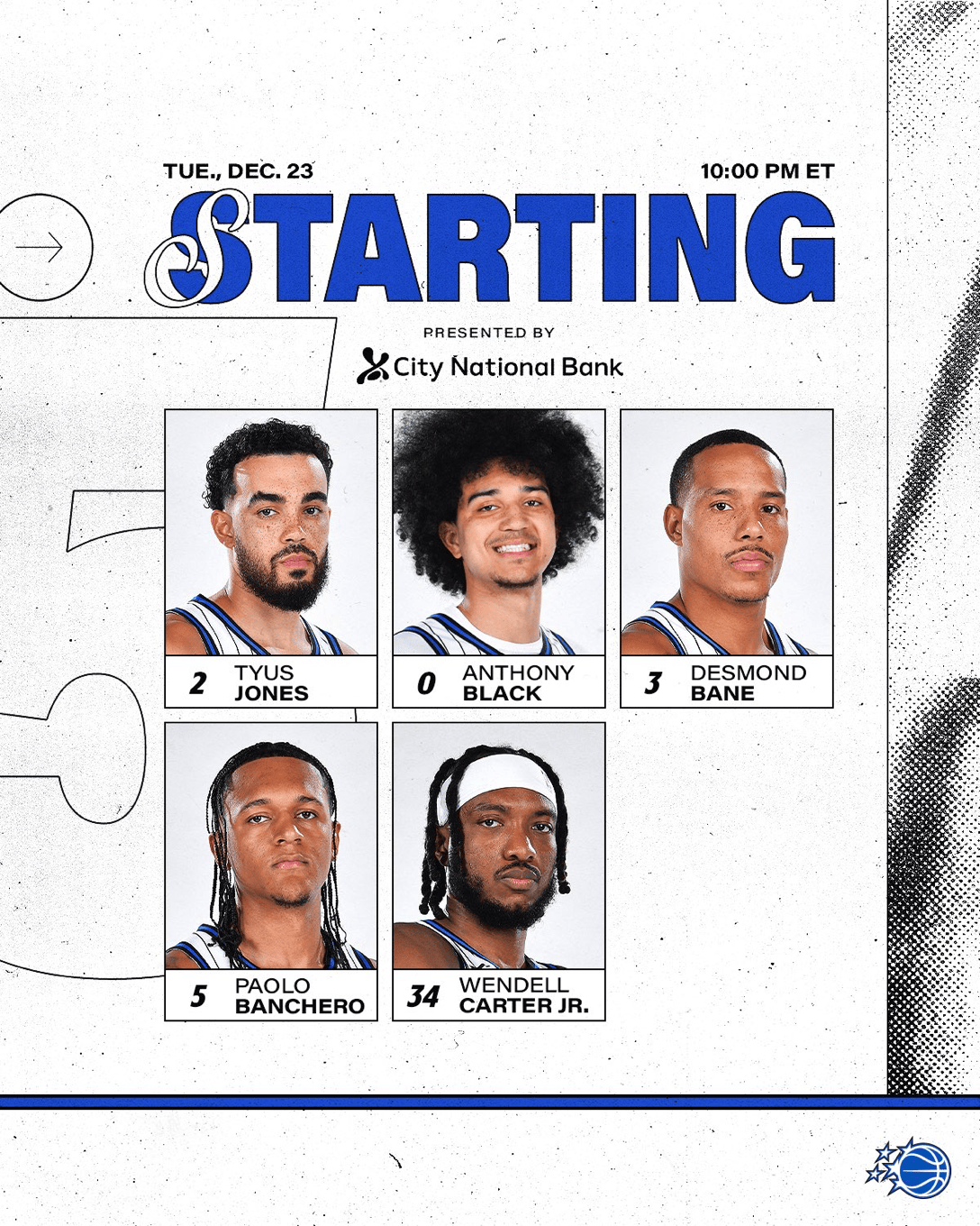 魔术今日首发:琼斯、布莱克、贝恩、班凯罗、卡特