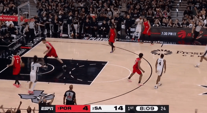 克林根末节连中两记三分,开拓者追到差15分打停马刺