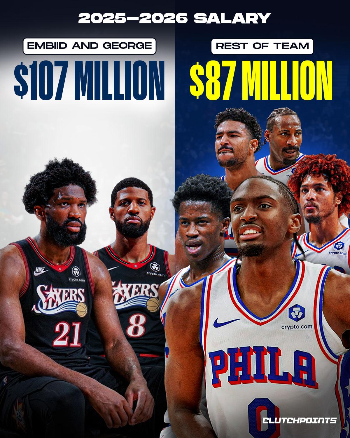 美媒:76人队薪资失衡,恩比德乔治占55%薪资仅贡献27%得分